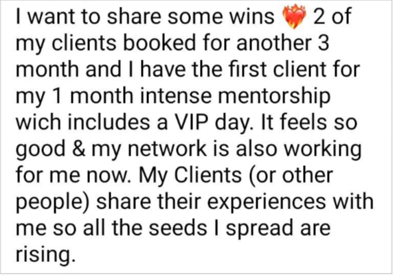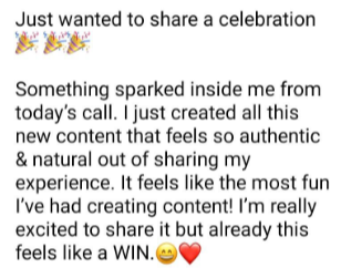 Each months she gives personal guidance and individual feedback in a Coaching / Q&A Call.